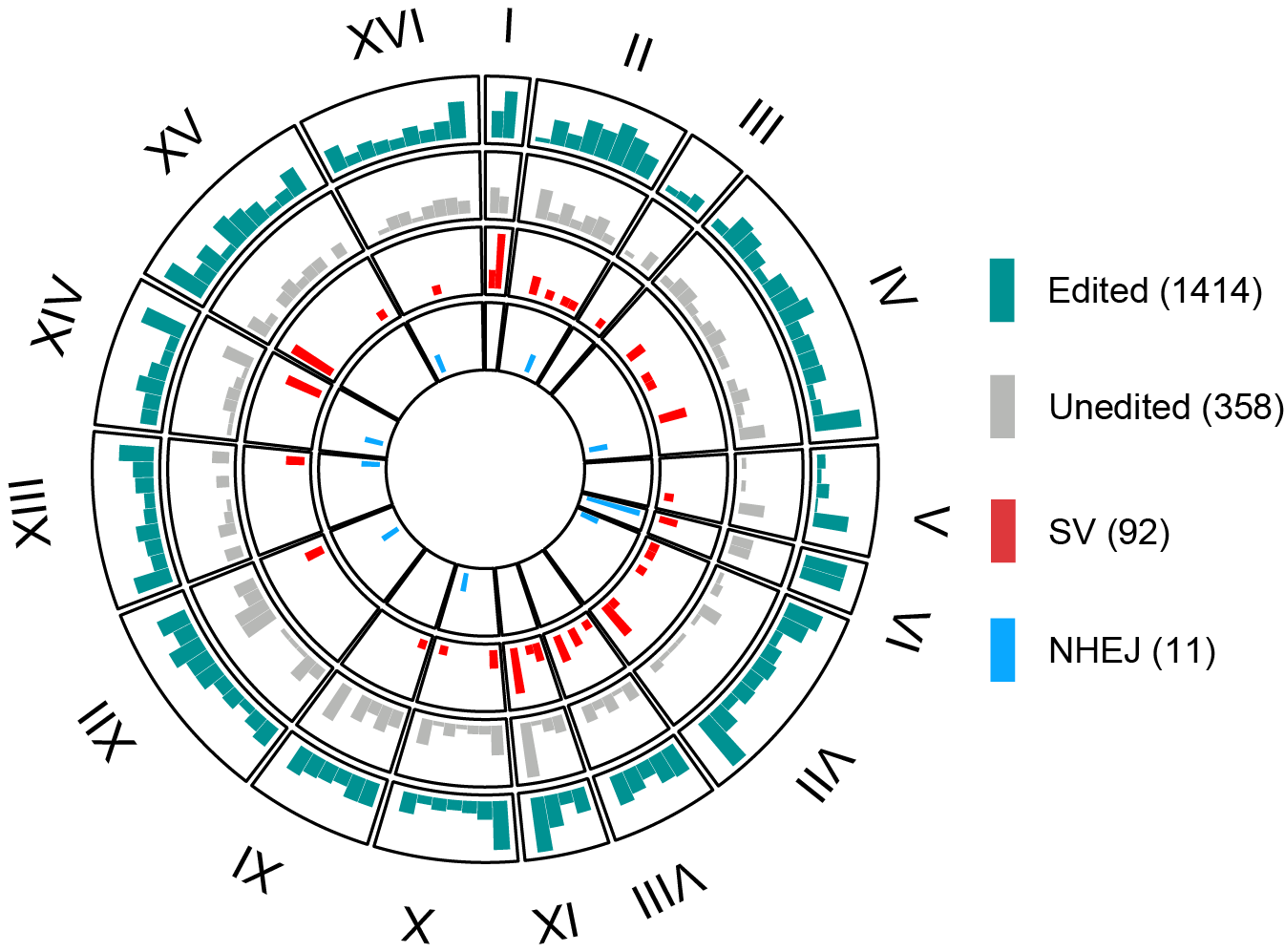 The training data of SCORE was a collection of 2,260 whole-genome sequencing datasets of Saccharomyces cerevisiae, wherein each single genome was treated with a single-guide RNA (sgRNA) for targeted cleavage of a unique genomic locus, paired with a double-stranded donor DNA template for the introduction of a natural SNP, indel or MNP genetic variant.